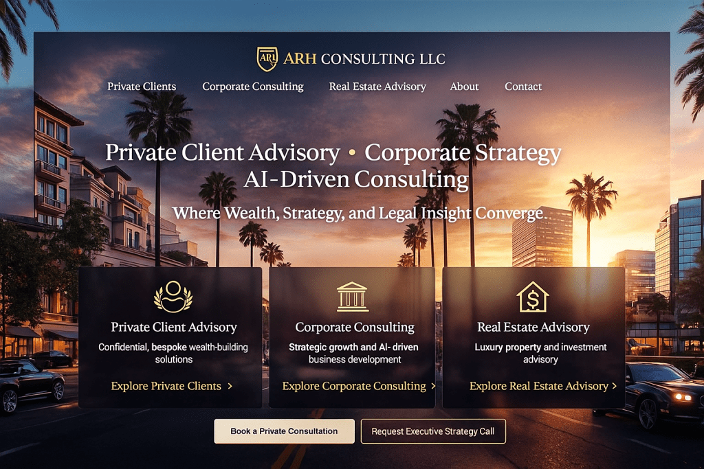 Based in Beverly Hills, with national reach, ARH Consulting LLC delivers bespoke advisory services designed for clients who demand discretion, accuracy, and results.